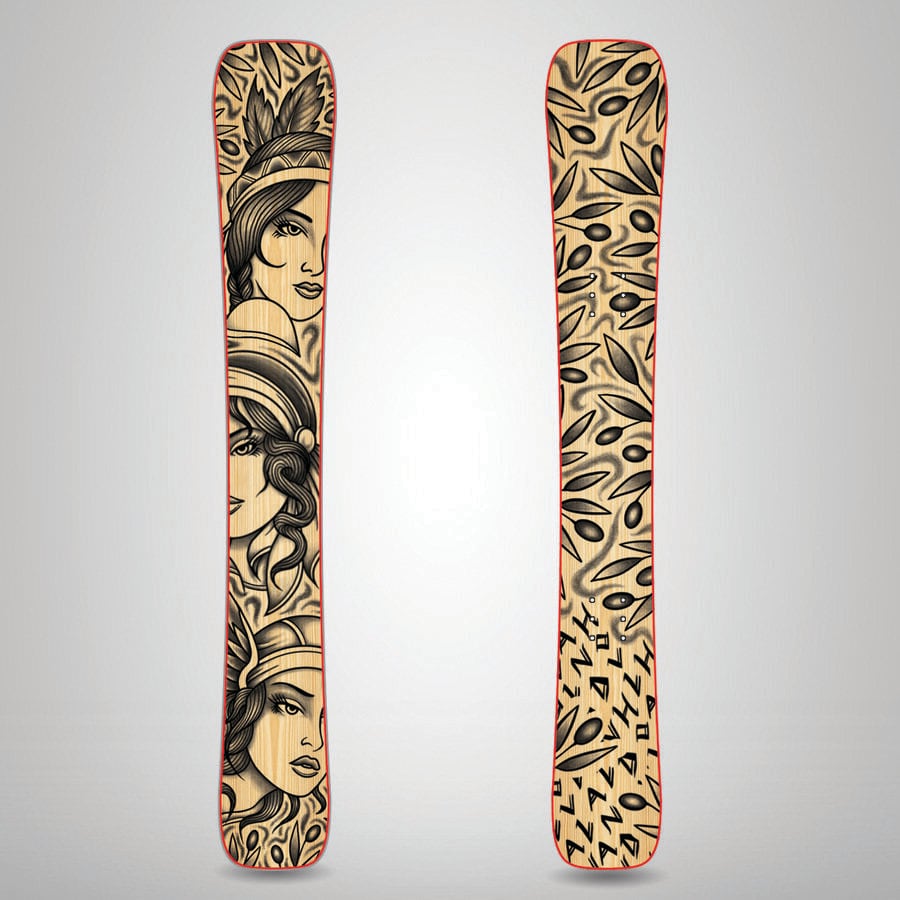 RAM(ラム)は最もライディングにバリエーションを与えるディレクショナルデッキ。ワイドで安定性が高く、ソフトフレックスでポップアップするサブデッキ。キッカーやジブのパークラン、そしてカービングや薄いパウダーランで抜群の性能を発揮する。